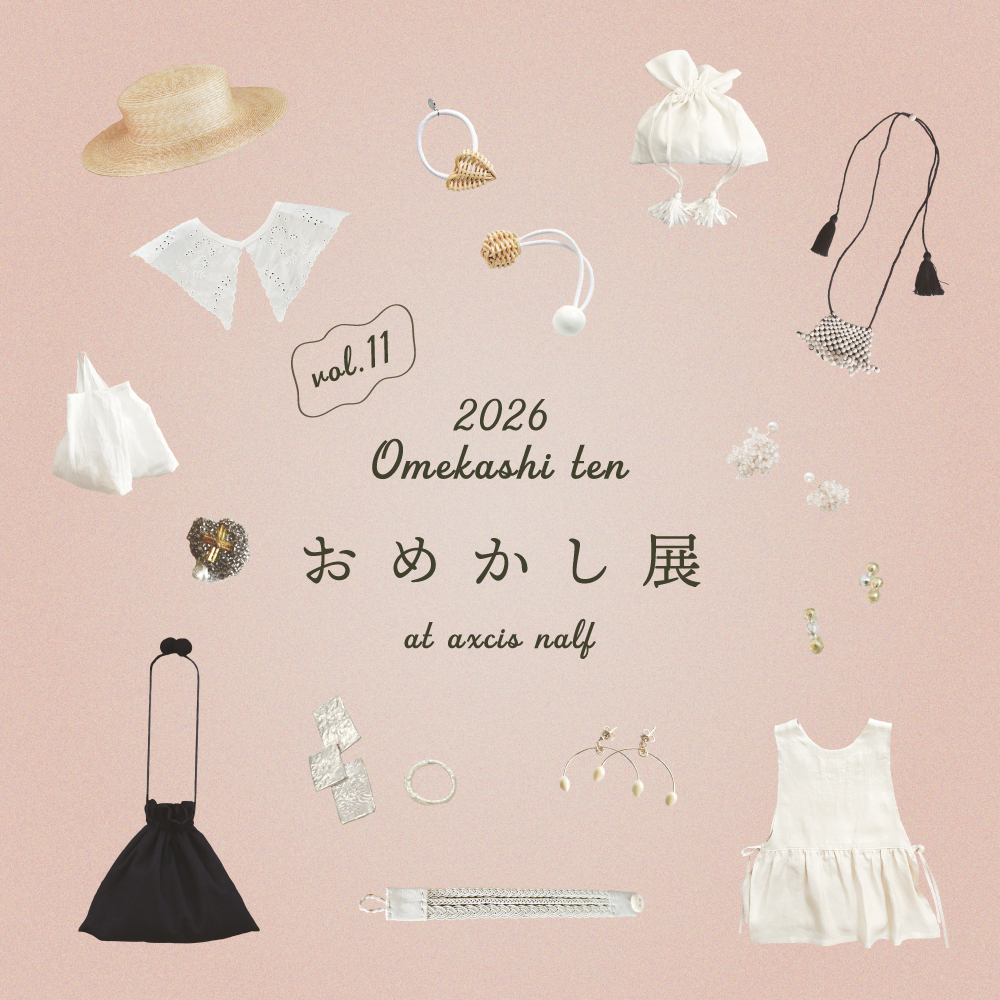 「おめかし展 vol.11」 2026.4.9 (木) – 5.6 (水/祝) at axcis nalf 今年も第11回目のおめかし展を開催します。 大人用のお洋服やバッグ、帽子、ピアス、ブローチなどたくさ … Read More