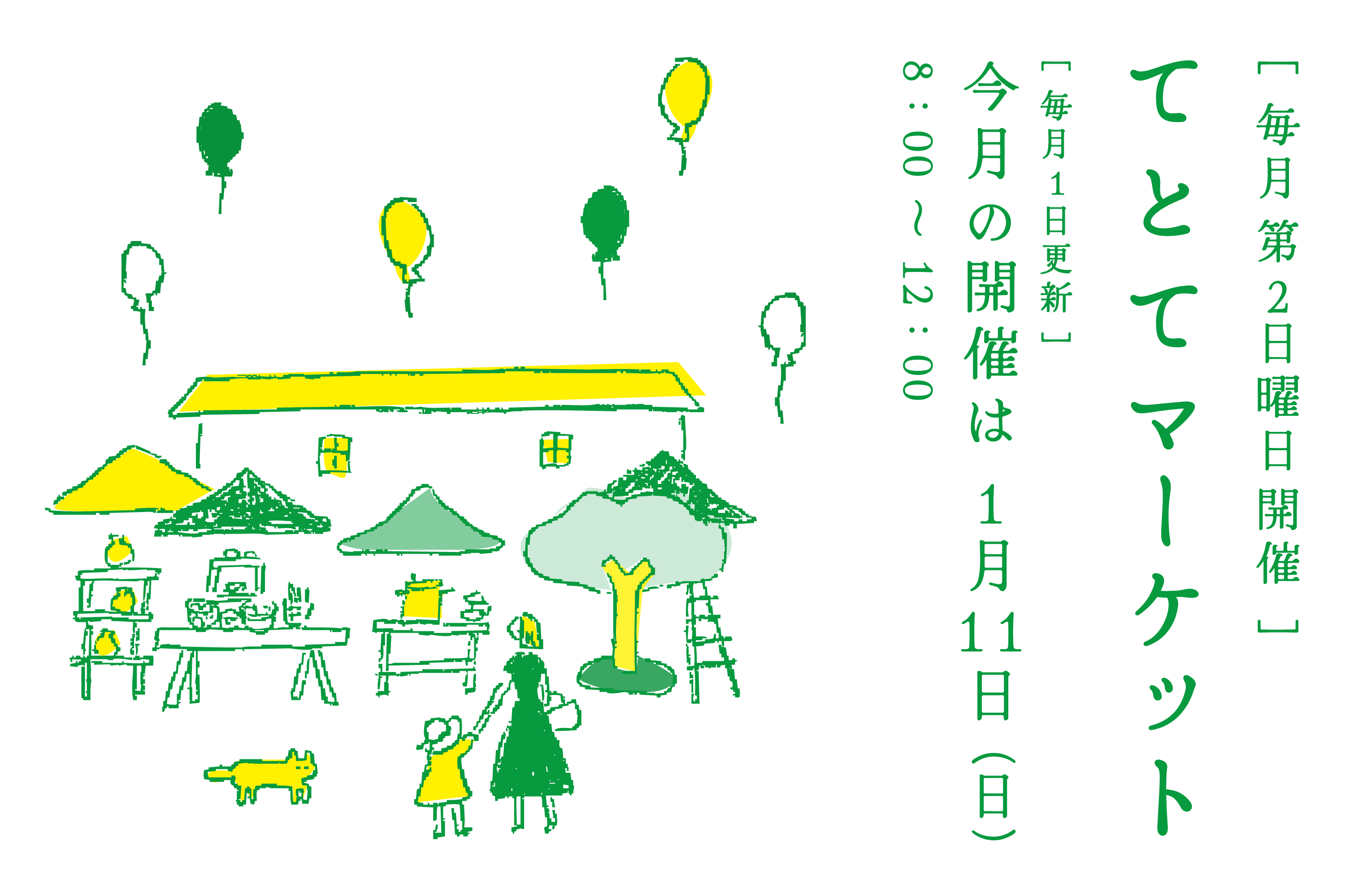 てとてマーケットでは出店者を募集しています。個人で野菜をつくっている•飲食店を営んでいる、イベントが好き、お店を持つのは難しいけど、お客様に提供する場が欲しいと思われている方など、みなさんが想いを込めてつくったものを「てとてマーケット」に出店してみませんか?詳しくは、「出店希望の方へ」をご確認ください。※サービスの内容によってはお断りさせていただく場合もございます。あらかじめご了承くださいませ。