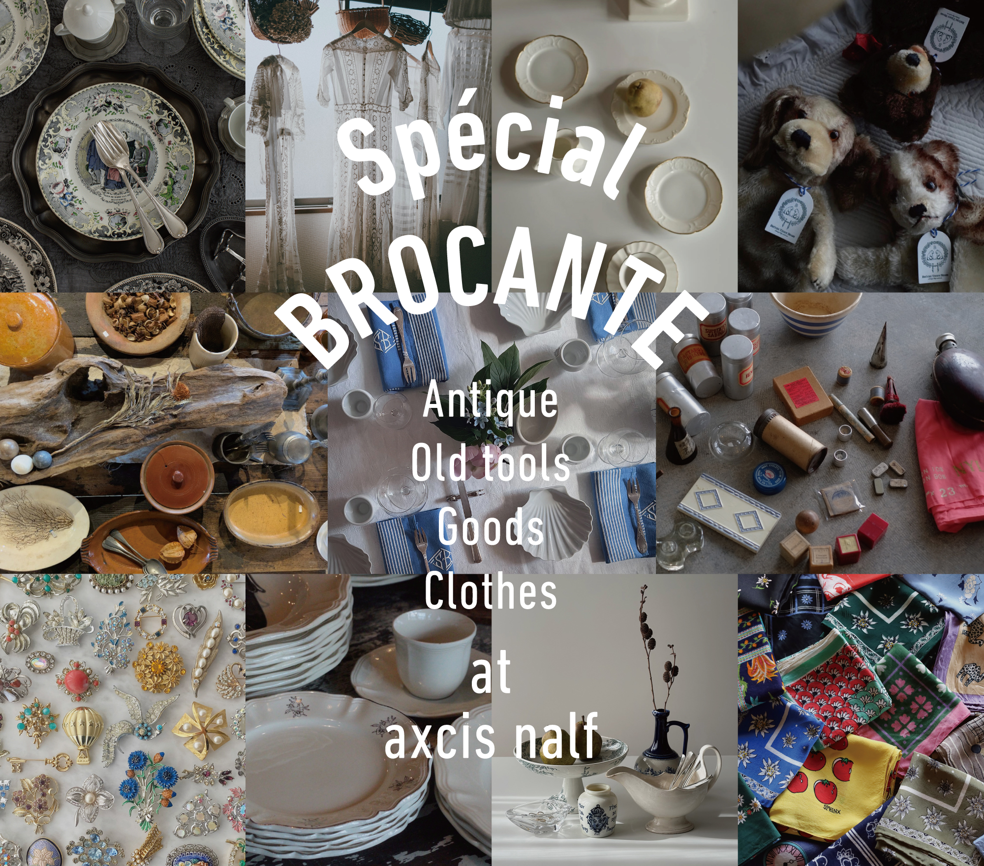 全国の古道具や古物を扱うお店の方々が買い付けたブロカントが、ずらりと並びます。パリの蚤の市を訪れたような、ワクワクする空間をお楽しみください。