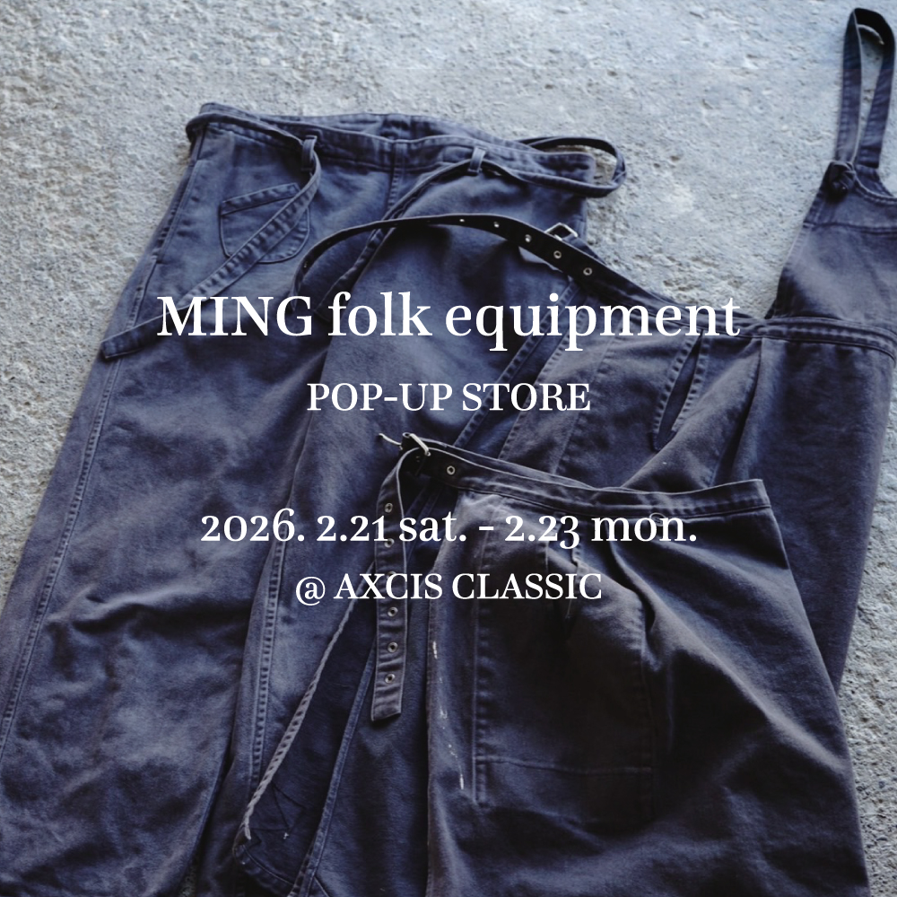 私たちMING folk equipment(ミング フォークエキップメント)はそんな民具に敬意を払い、装飾品ではなく生活のいち道具として使える洋服や、手仕事から生まれる日用品を集めたお店です。あえて国やテイストのボーダーラインは引かずこれからの時代でも長く愛用したいと思ってもらえるような、次世代の民具をご提案します。